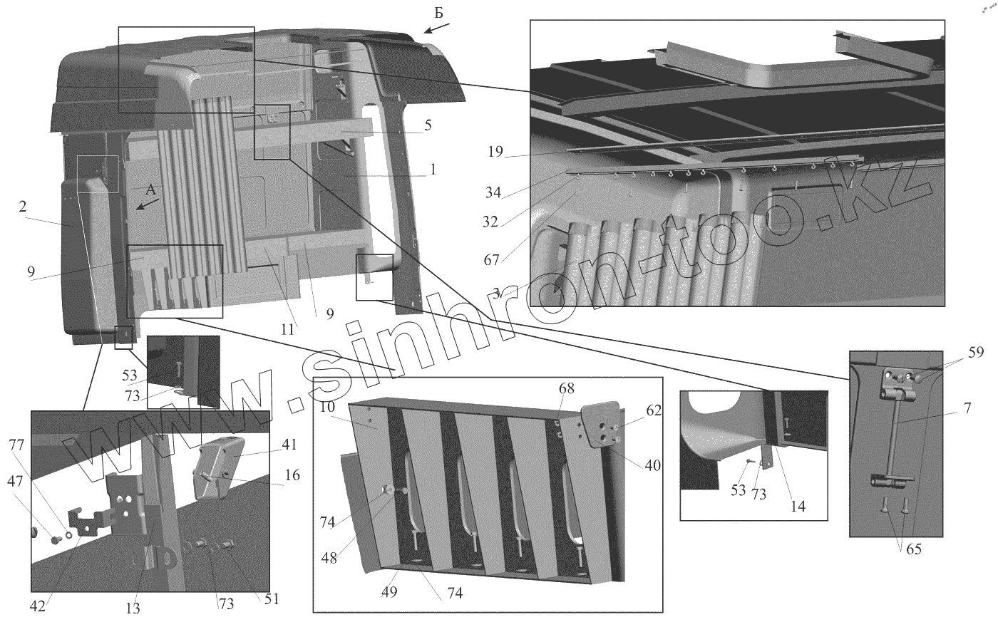 Каталог запасных частей к технике: МАЗ-544018. Установка спальных мест 6430-8200010-020
