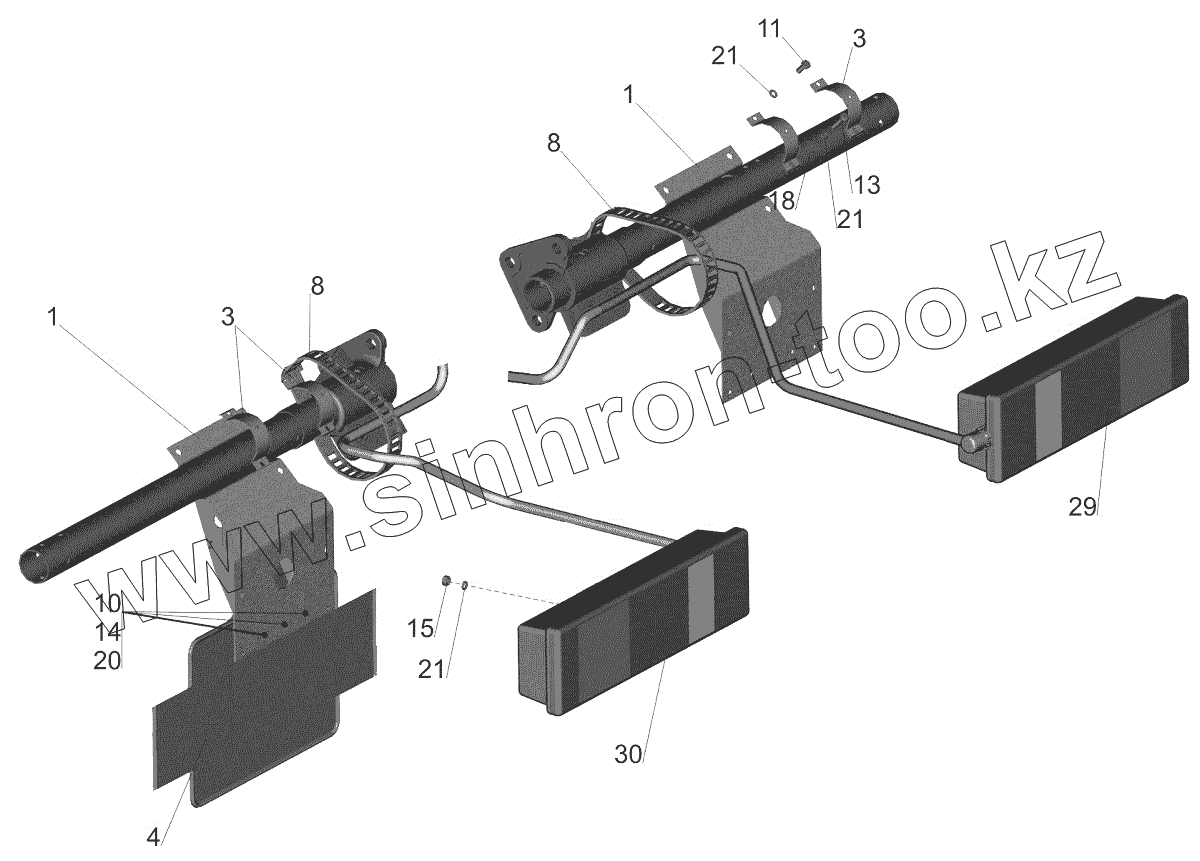Каталог запасных частей к технике: МАЗ-544018. Установка задних фонарей 544019-3700009