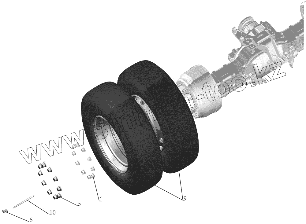 Каталог запасных частей к технике: МАЗ-544018. Установка задних колес