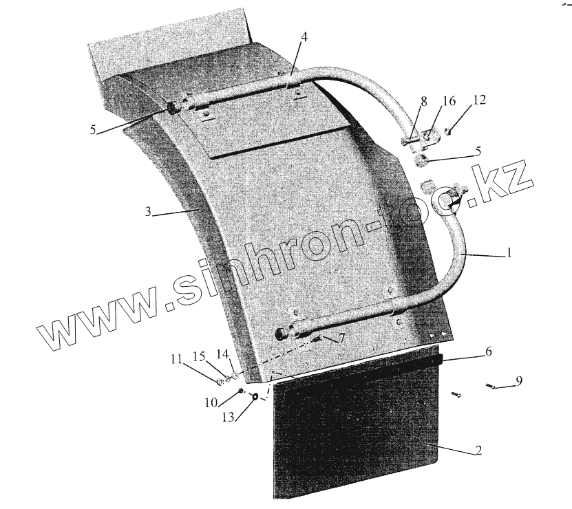 Каталог запасных частей к технике: МАЗ-544069. Установка брызговиков передних колес 6430-8400030-030
