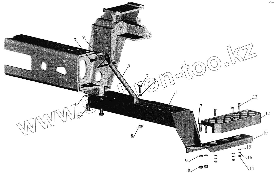 Каталог запасных частей к технике: МАЗ-544069. Установка нижней подножки 544008-8400016