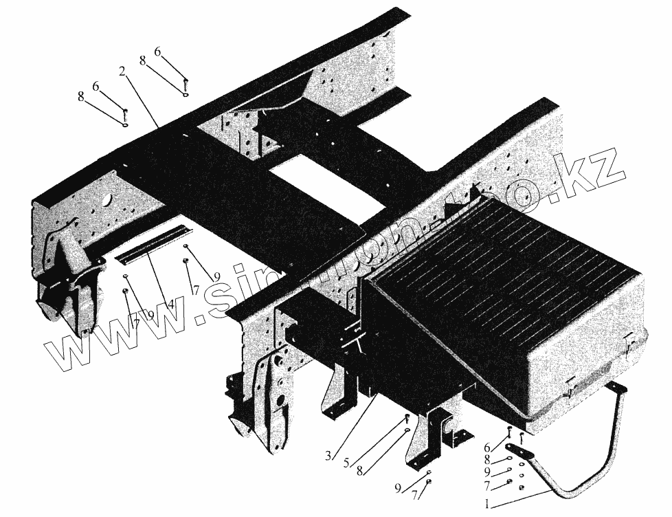 Каталог запасных частей к технике: МАЗ-544069. Установка площадки шасси и подножки 64302-2800026