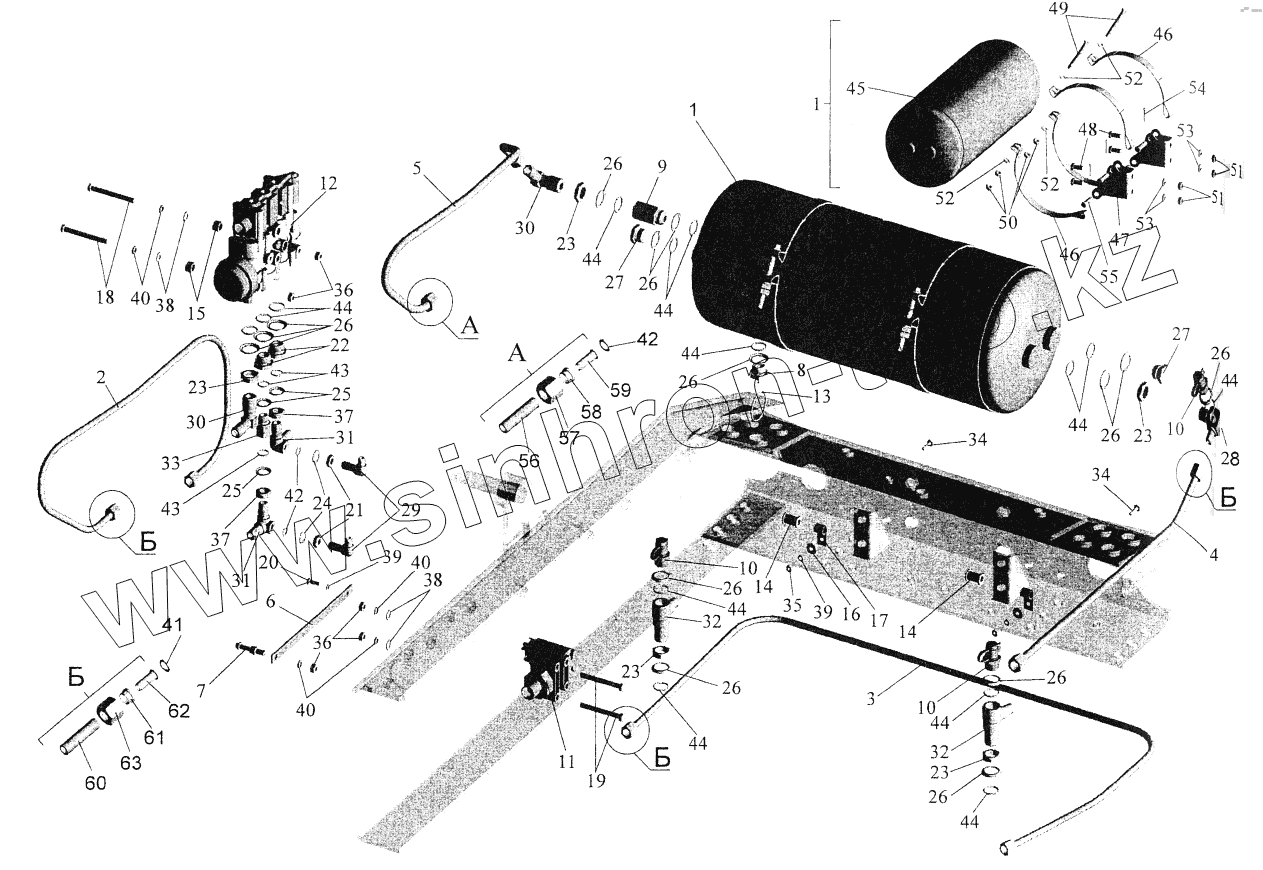 Каталог запасных частей к технике: МАЗ-544069. Установка трубопроводов (ECAS) 5440-2900018-001