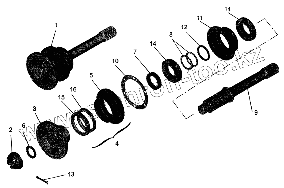 Каталог запасных частей к технике: МАЗ-5440. Мост средний. Вал задний
