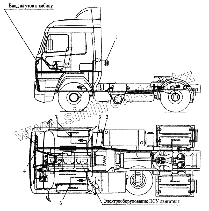 Ввод жгутов ABS/ASR, EGAS и EDC в кабину автомобиля МАЗ-544020/643068