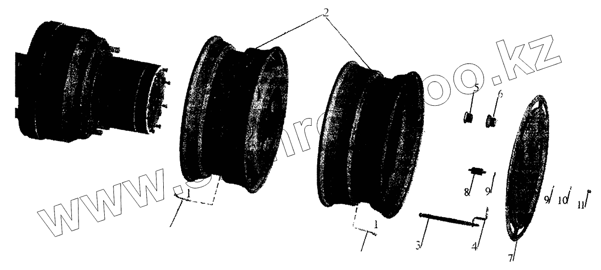 Каталог запасных частей к технике: МАЗ-5440. Установка колес на задний и средний мосты