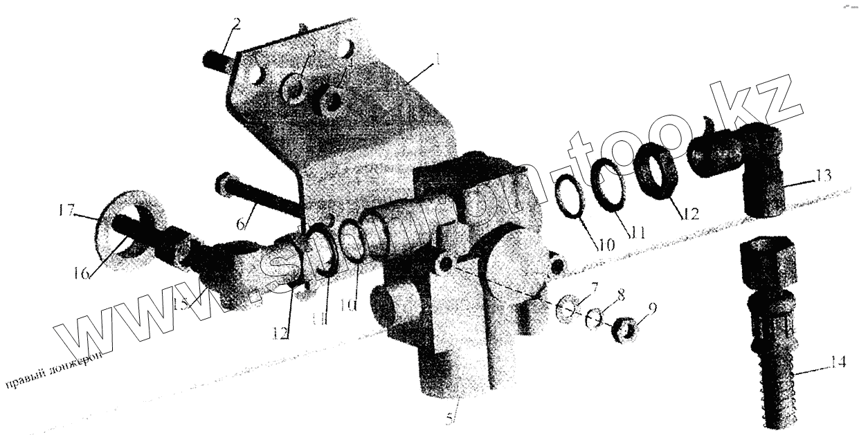 Каталог запасных частей к технике: МАЗ-5440. Установка передних модуляторов и присоединительной арматуры