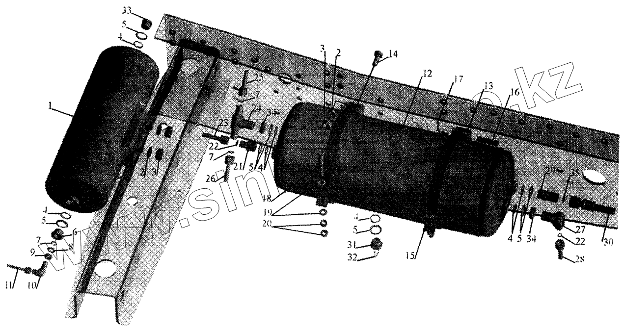 Каталог запасных частей к технике: МАЗ-5440. Установка ресиверов и присоединительной арматуры