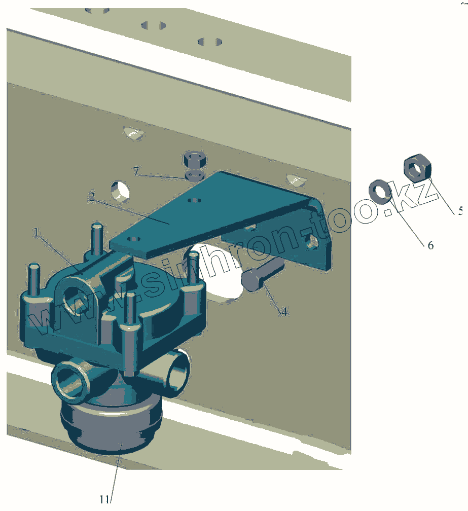 Каталог запасных частей к технике: МАЗ-5440B5. Крепление клапана ускорительного 544003-3518004