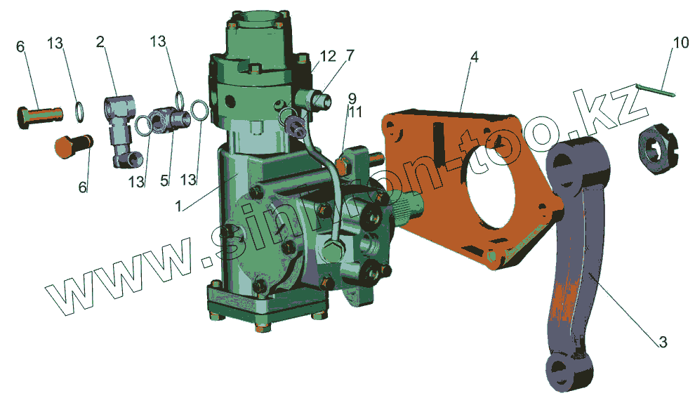 Каталог запасных частей к технике: МАЗ-5440B5. Механизм рулевой с кронштейном 6418-3400006