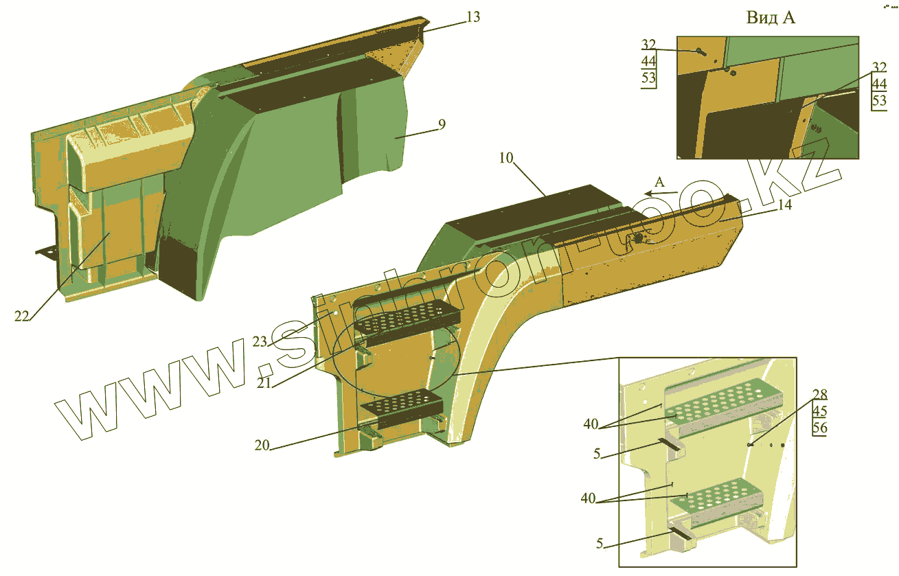 Каталог запасных частей к технике: МАЗ-5440B5. Оперение 6312-8400010-010, 6312-8400011-010