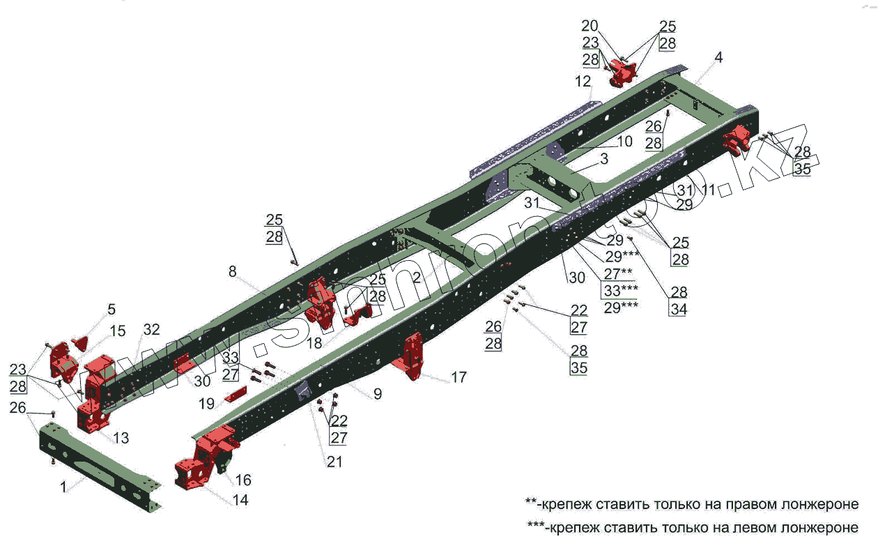 Каталог запасных частей к технике: МАЗ-5440B5. Рама 5440B3-2801002-030