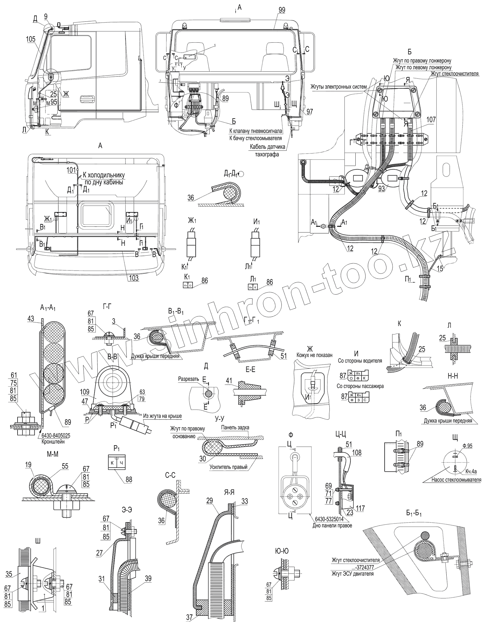 Каталог запасных частей к технике: МАЗ-5440B5. Установка электрооборудования на кабине