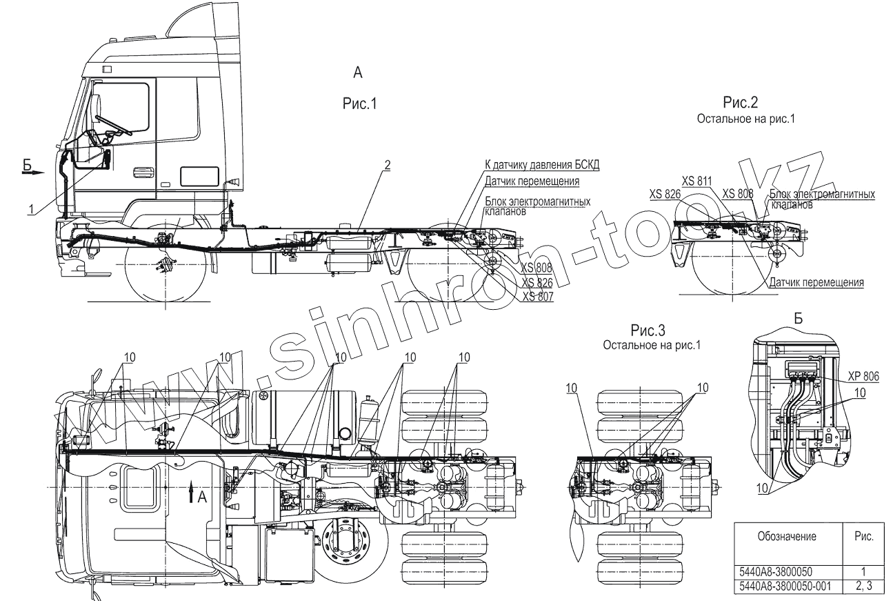 Каталог запасных частей к технике: МАЗ-5440B5. Установка электрооборудования пневмоподвески