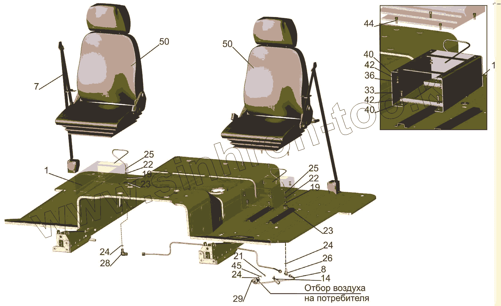 Каталог запасных частей к технике: МАЗ-5440B5. Установка и пневмопитание сидений 544069-6800006