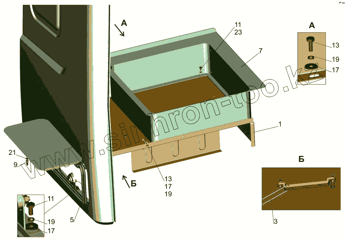 Каталог запасных частей к технике: МАЗ-5440B5. Установка инструментального ящика 6430-5000115-020