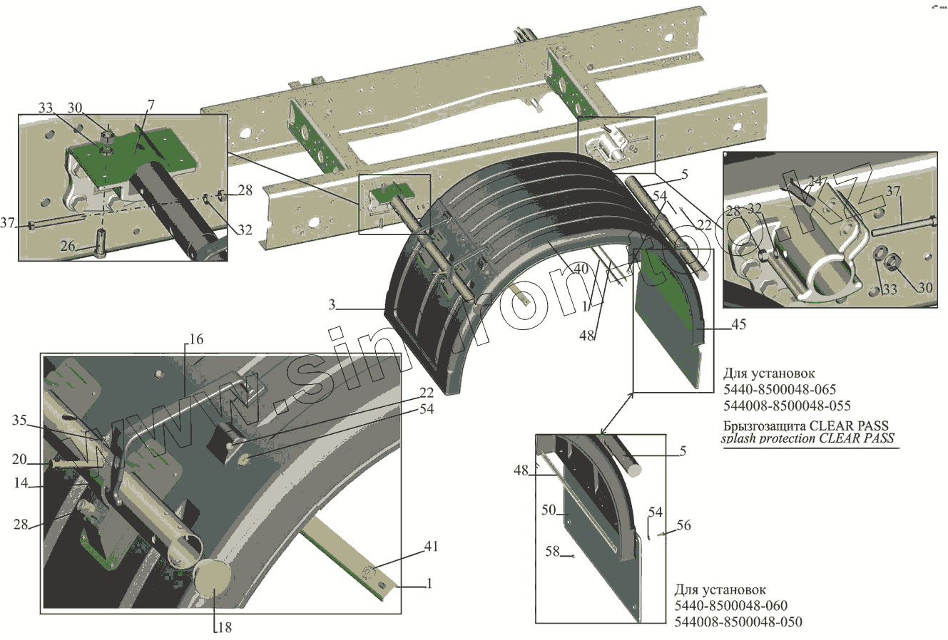 Каталог запасных частей к технике: МАЗ-5440B5. Установка крыльев