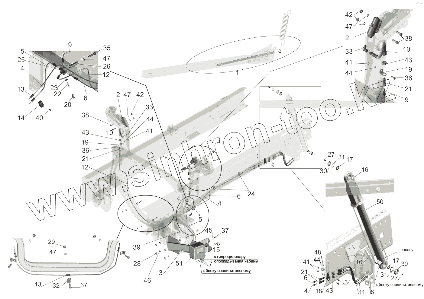 Каталог запасных частей к технике: МАЗ-5440B5. Установка механизма подъема кабины 5440А8-5000040