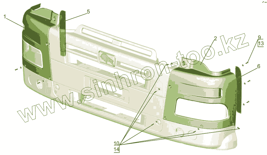Каталог запасных частей к технике: МАЗ-5440B5. Установка панелей бампера 643019-2800005