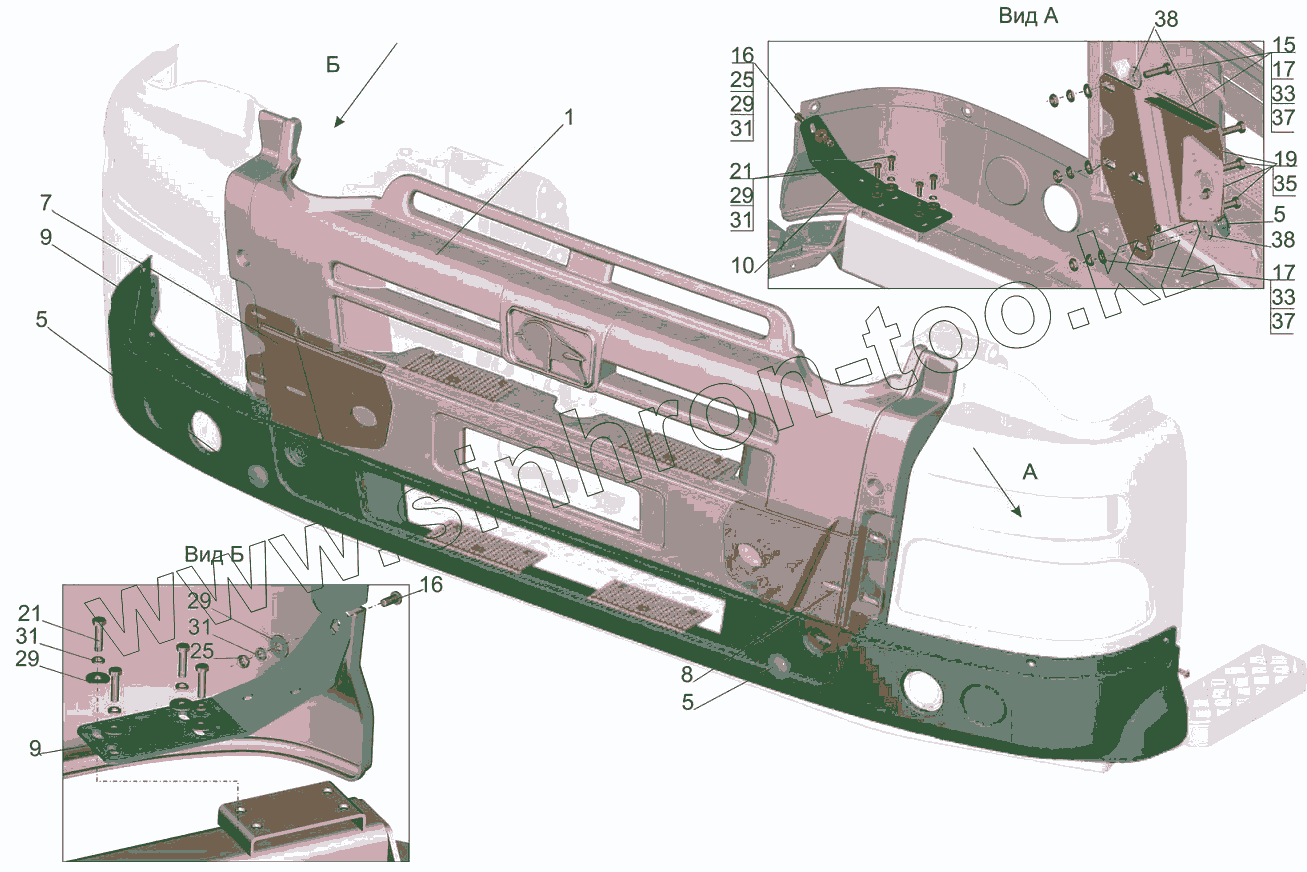 Каталог запасных частей к технике: МАЗ-5440B5. Установка переднего бампера 643019-2800003-030