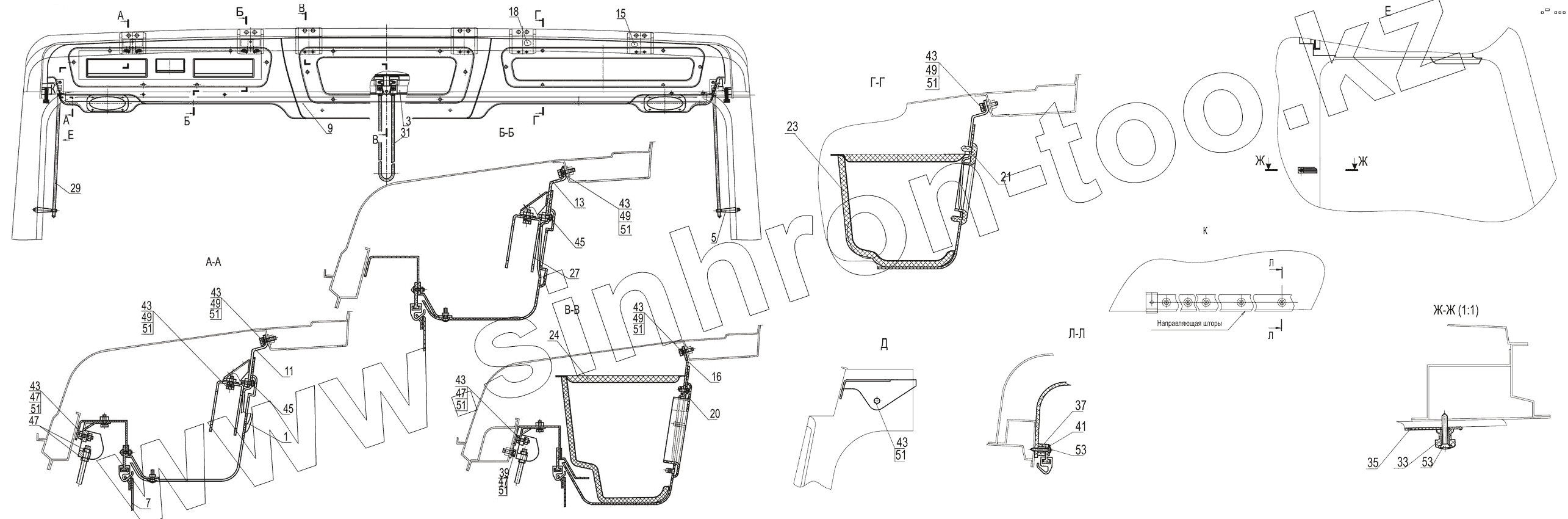 Каталог запасных частей к технике: МАЗ-5440B5. Установка полки, штор 5440-8200034
