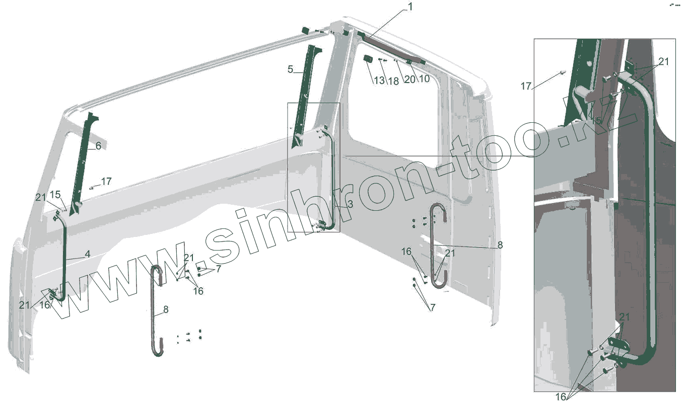 Каталог запасных частей к технике: МАЗ-5440B5. Установка поручней в кабине 6430-8200030