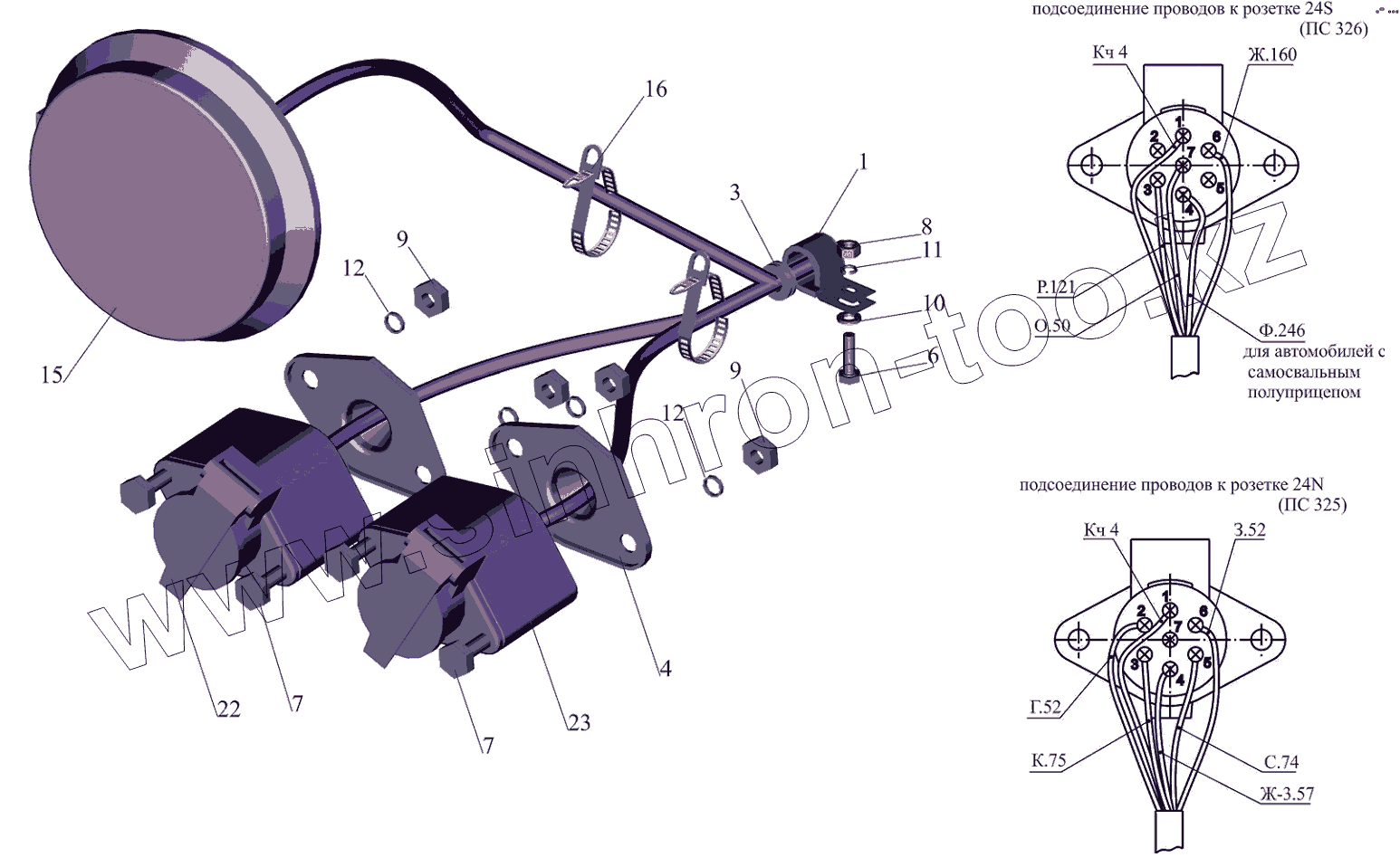 Каталог запасных частей к технике: МАЗ-5440B5. Установка штепсельных розеток 6430-3700015
