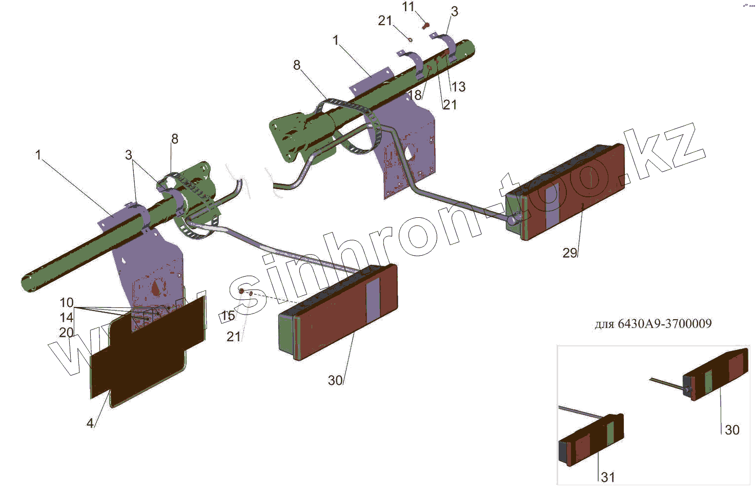 Каталог запасных частей к технике: МАЗ-5440B5. Установка задних фонарей 544019-3700009