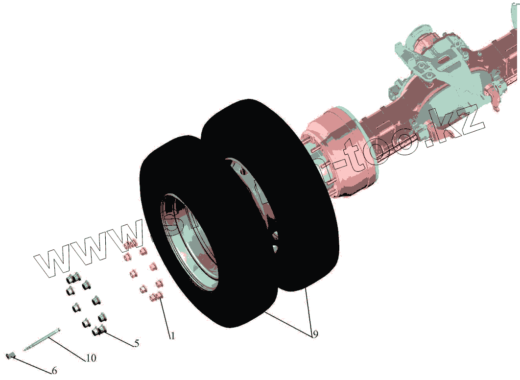 Каталог запасных частей к технике: МАЗ-5440B5. Установка задних колес