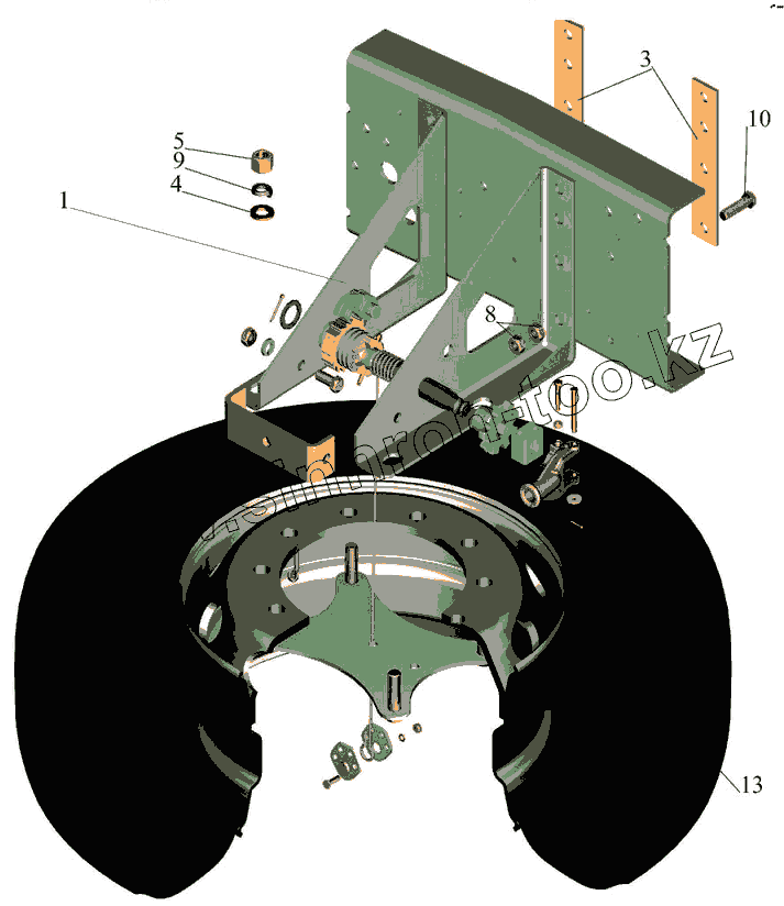 Каталог запасных частей к технике: МАЗ-5440B5. Установка запасного колеса