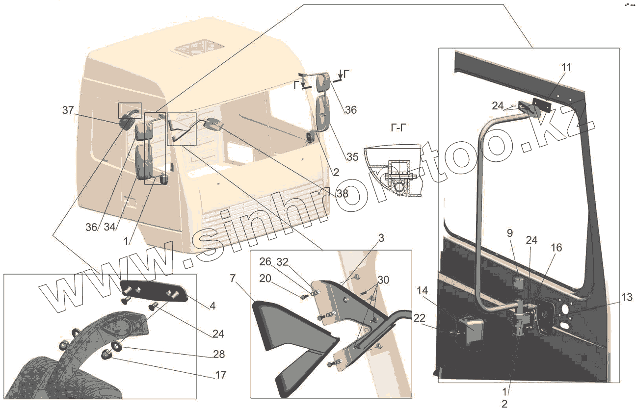 Каталог запасных частей к технике: МАЗ-5440B5. Установка зеркал 6430-8200005-010