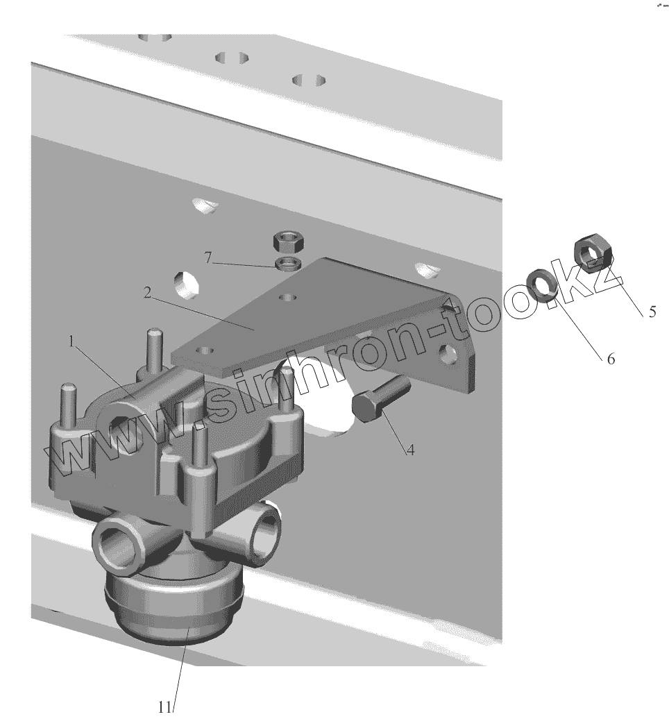 Каталог запасных частей к технике: МАЗ-5440B9, 6430B9. Крепление клапана ускорительного 544003-3518004