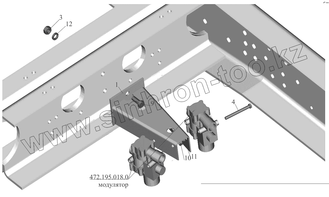 Каталог запасных частей к технике: МАЗ-5440B9, 6430B9. Крепление модуляторов 5440А8-3538004