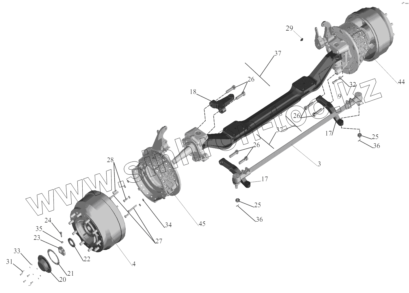 Каталог запасных частей к технике: МАЗ-5440B9, 6430B9. Передняя ось 6430-3000015-001