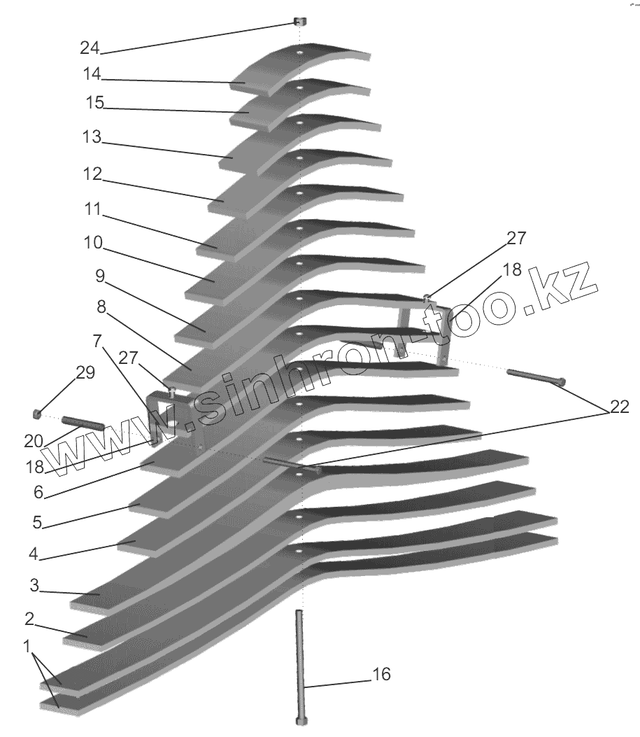 Каталог запасных частей к технике: МАЗ-5440B9, 6430B9. Рессора задняя 55165-2912012-010