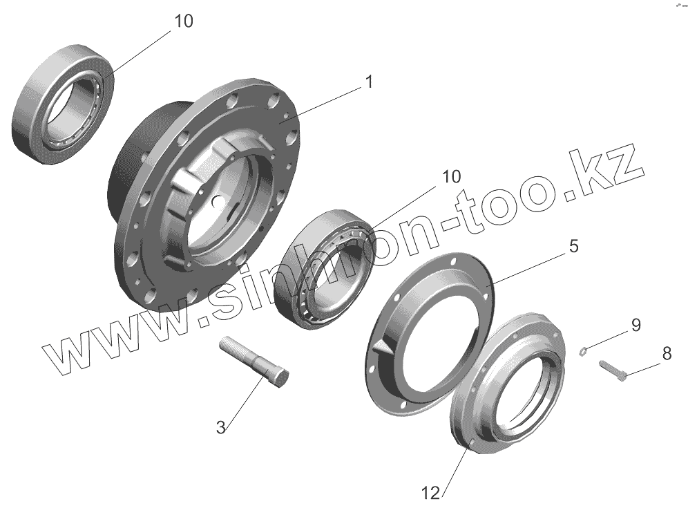Каталог запасных частей к технике: МАЗ-5440B9, 6430B9. Ступица с крышкой 544019-3104006-010