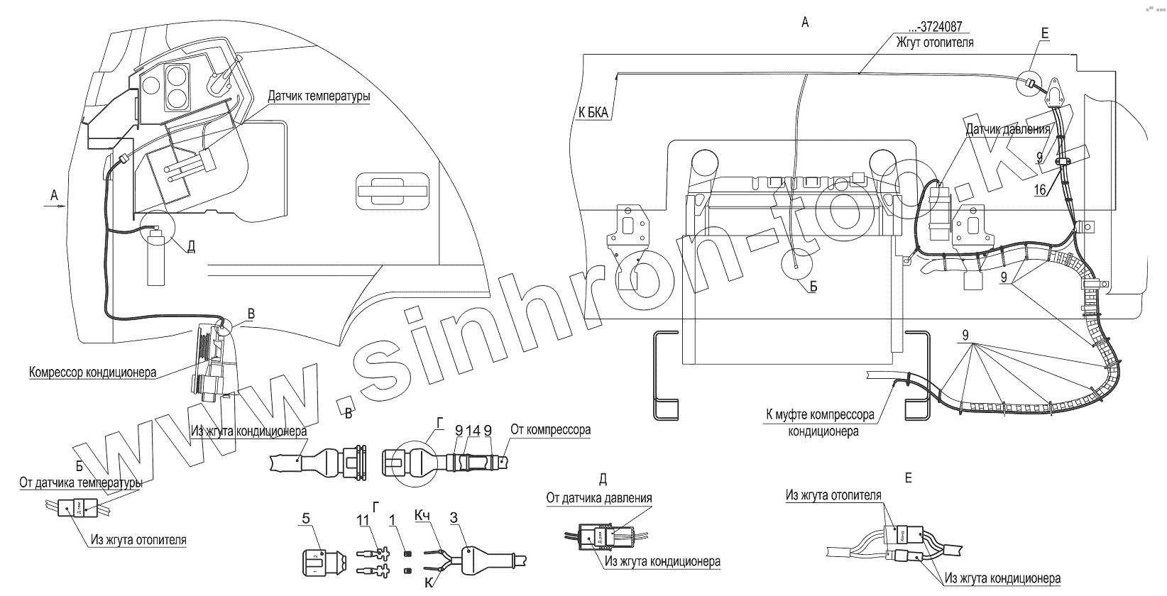 Каталог запасных частей к технике: МАЗ-5440B9, 6430B9. Установка электрооборудования кондиционера 5440А9-3700092