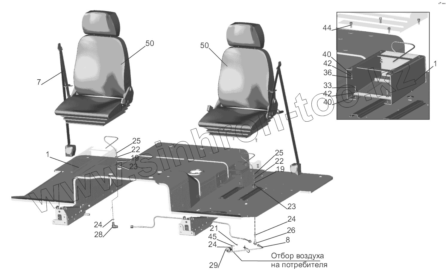Каталог запасных частей к технике: МАЗ-5440B9, 6430B9. Установка и пневмопитание сидений 544069-6800006