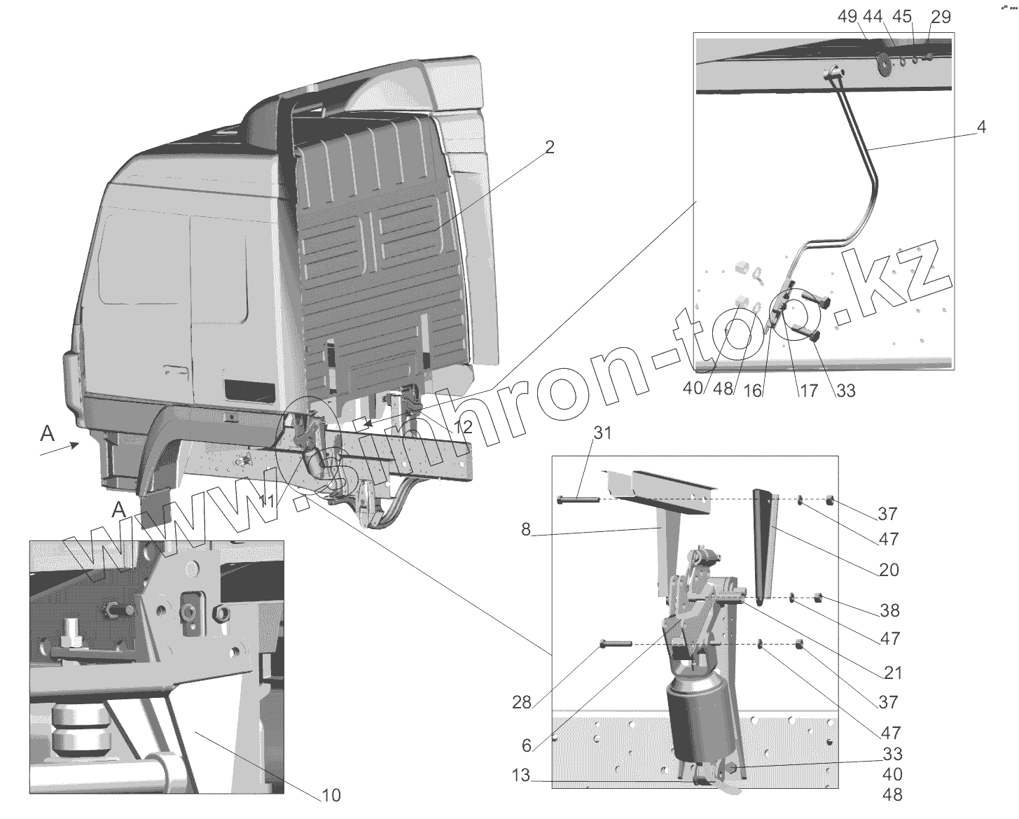 Каталог запасных частей к технике: МАЗ-5440B9, 6430B9. Установка кабины