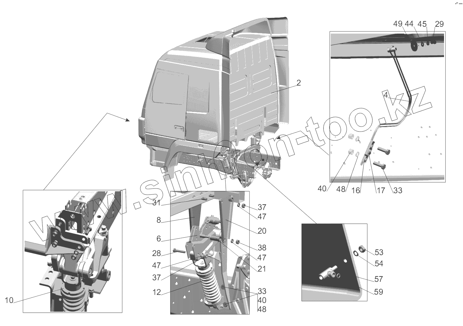 Каталог запасных частей к технике: МАЗ-5440B9, 6430B9. Установка кабины