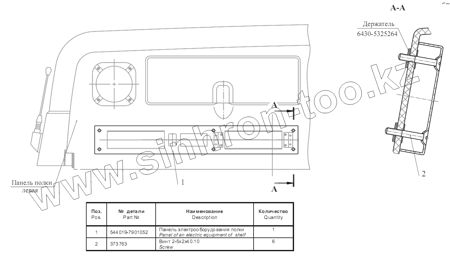 Каталог запасных частей к технике: МАЗ-5440B9, 6430B9. Установка панели на полке 544019-7901080