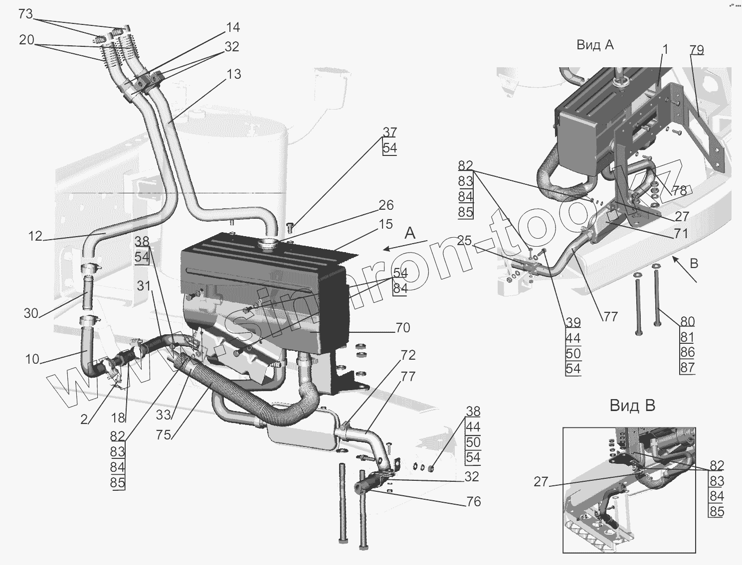 Каталог запасных частей к технике: МАЗ-5440B9, 6430B9. Установка подогревателя 555035-1015001-010