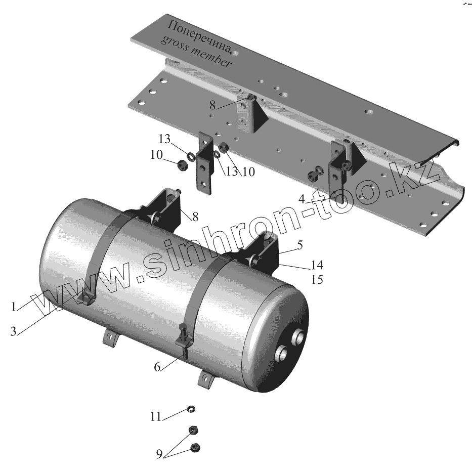 Каталог запасных частей к технике: МАЗ-5440B9, 6430B9. Установка ресивера 54401-3513007