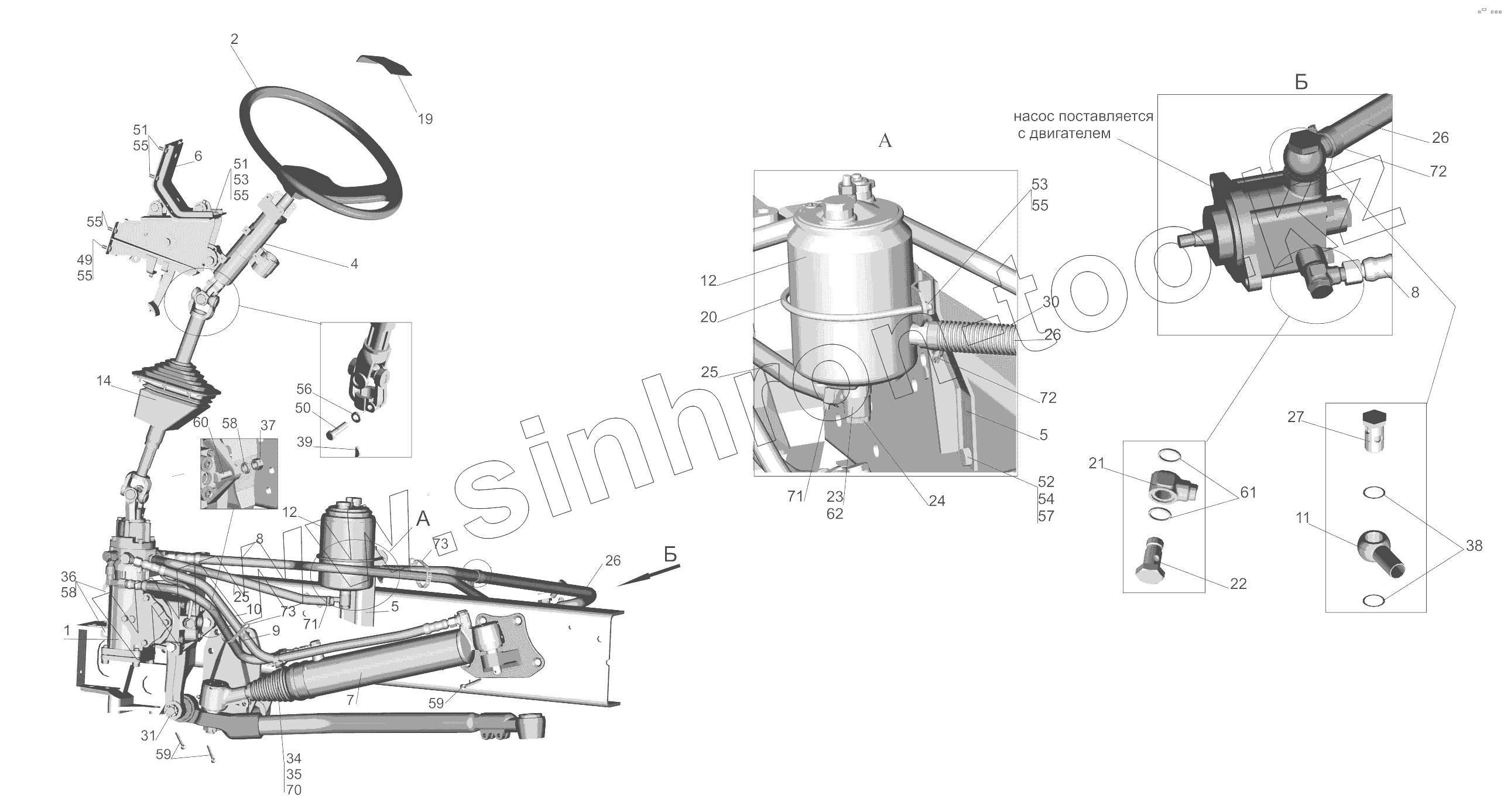 Каталог запасных частей к технике: МАЗ-5440B9, 6430B9. Установка рулевого управления 6430В9-3400001