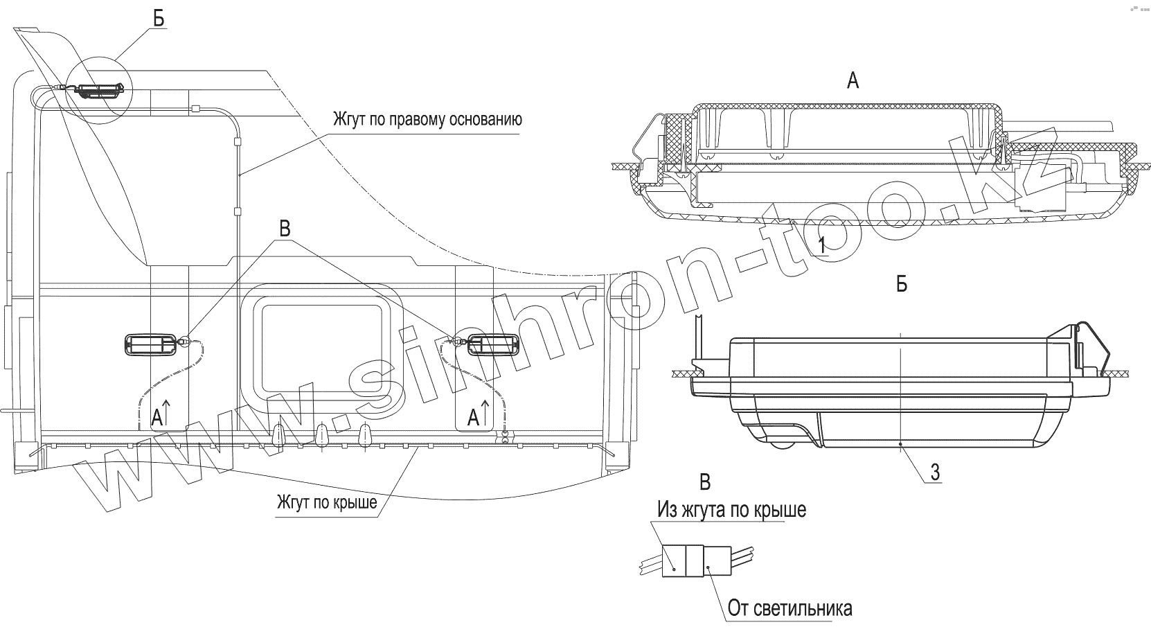 Установка светильников в кабине 544008-3700136