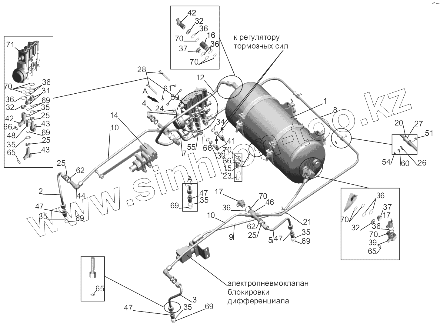 Каталог запасных частей к технике: МАЗ-5440B9, 6430B9. Установка трубопроводов ECAS 5440-2900018-010