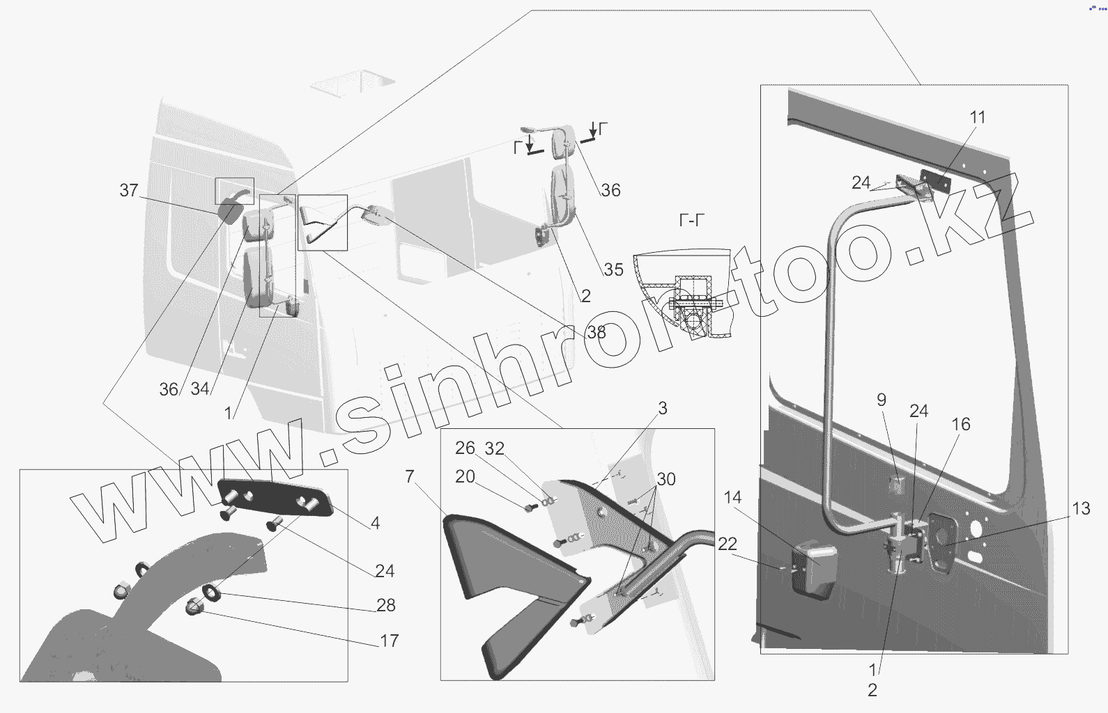 Каталог запасных частей к технике: МАЗ-5440B9, 6430B9. Установка зеркал 6430-8200005-010