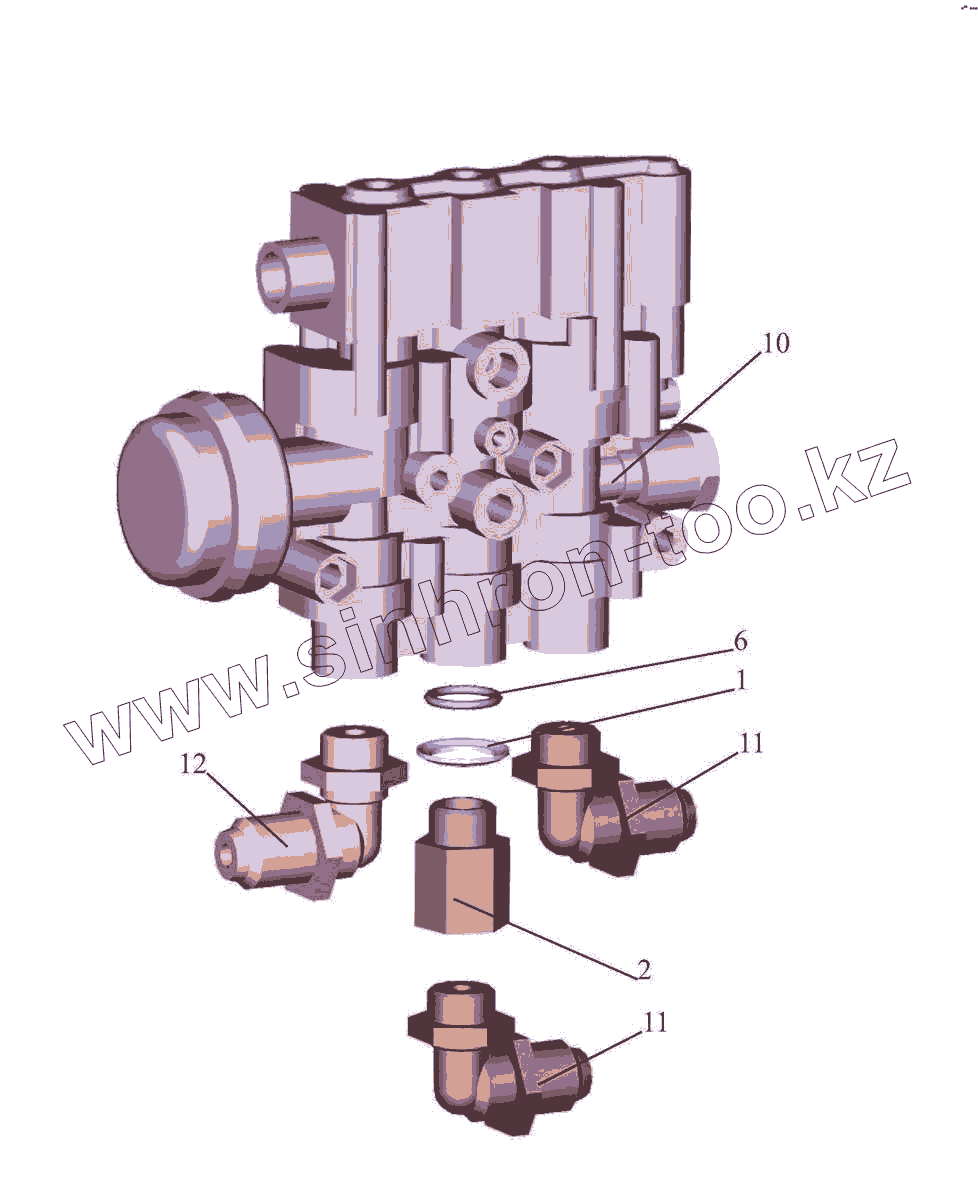 Каталог запасных частей к технике: МАЗ-5440E9. Блок электропневмоклапанов ECAs с угольниками 5440Е9-2926006