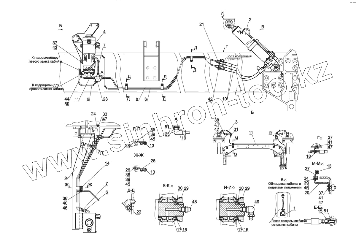 Каталог запасных частей к технике: МАЗ-5440E9. Механизм подъема кабины 544019-5000040