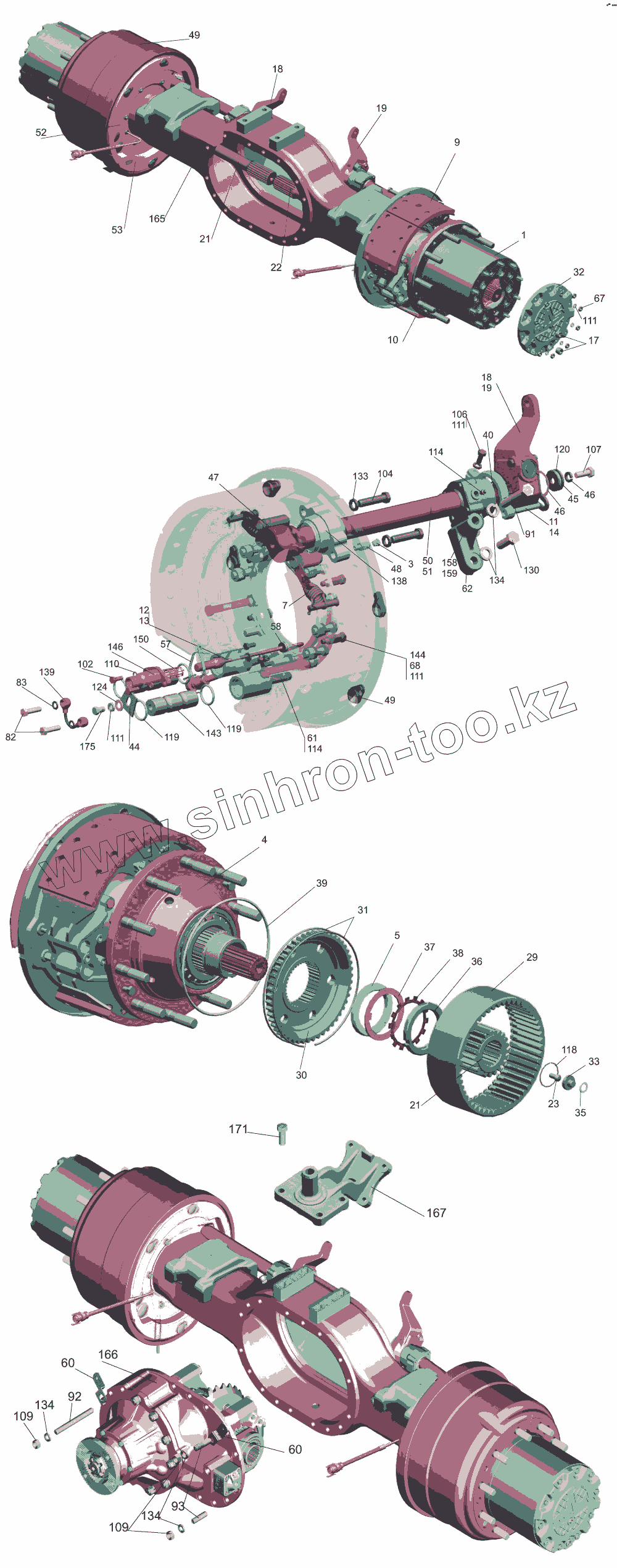 Каталог запасных частей к технике: МАЗ-5440E9. Мост задний